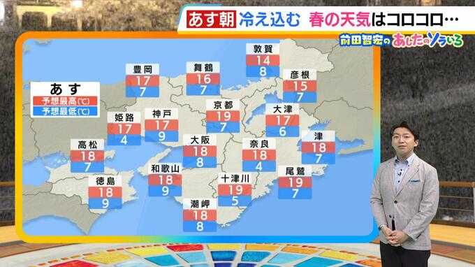 4月8日(水)の近畿地方は、穏やかな晴れの天気。日中は日ざしが暖かいですが、朝の冷え込みに要注意です。 近畿地方は移動性の高気圧にしっかりと覆われるでしょう。前日はあちらこちらで雨も降りましたが、水曜…