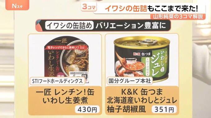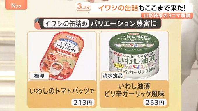 水産会社「極洋」の担当者によると「ここ数年からイワシ缶の売り上げは上昇中。サバ缶より種類が豊富」ということです。