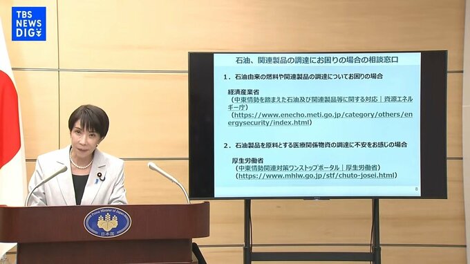エネルギー源以外の重要物資の安定供給確保にも取り組んでおります。ナフサ由来の化学製品、医療関連物資、食品包装容器、ゴミ袋、半導体関連物資など物資ごとに製造メーカーが継続供給可能な期間を調査し、把握した上で、需要側や販売店の在庫の活用、国内外での製造拡大・継続などの対応策を速やかに講じております。特に医療につきましては、厚生労働大臣および経済産業大臣を本部長とする対策本部を先月末に設置し、対応を進めています。両省の連携によりまして、川上の化学メーカーから川下の医療機関までサプライチェーン全体を鳥の目、虫の目、魚の目で把握し、対応を講じております。