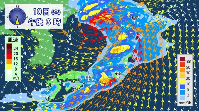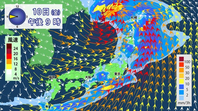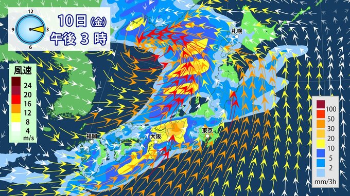 3. 【今後の雨】雷を伴い激しい雨が降り大雨の所も 9日~10日にかけて低気圧と前線が通過 土砂災害・低い土地の浸水・河川の増水などに注意【最新・雨と風のシミュレーション】