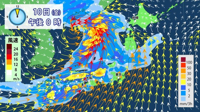 【今後の雨】雷を伴い激しい雨が降り大雨の所も 9日~10日にかけて低気圧と前線が通過 土砂災害・低い土地の浸水・河川の増水などに注意【最新・雨と風のシミュレーション】