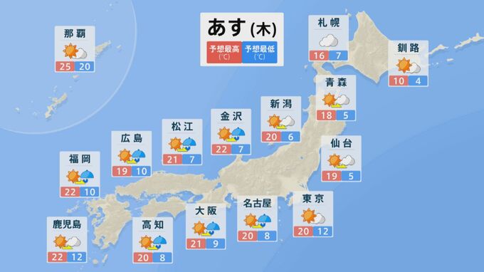 9日は西から次第に天気は下り坂です。夕方以降、九州より東で雨が降り出しそうです。