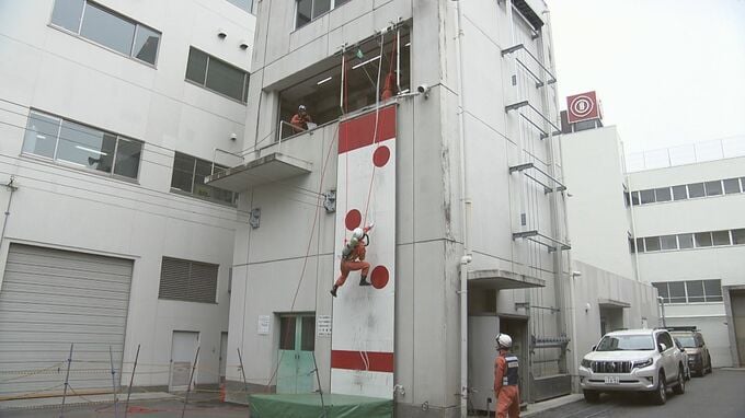 この特別訓練は、郡山地方広域消防組合の本部で行われ、救助の技術を競う大会での上位を目指して、管内の消防署から精鋭16人が参加しました。8日は、ロープを使って建物を降りて、けが人などを素早く安全に救助する訓練が披露されました。