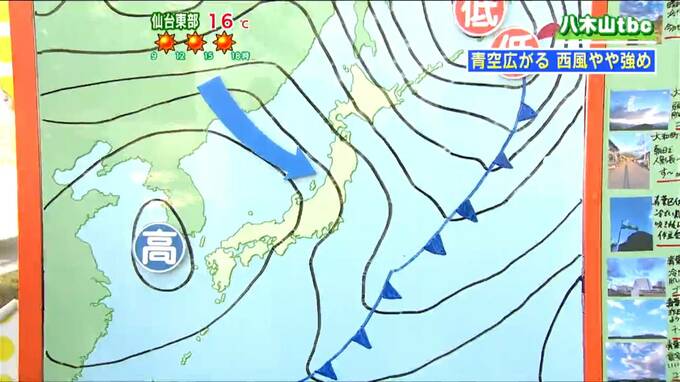 8日午前3時の天気図では、西に高気圧、東に低気圧という一時的に冬型の気圧配置に近い形になっています。等圧線の間隔は7日よりは広がっているものの、まだやや狭い状態が続いているため、日中は西風がやや強めに吹くところがありそうです。場合によっては強風注意報が再び発表されるおそれもあります。