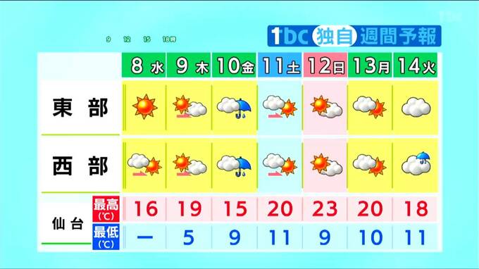 10日(金)は低気圧や前線の影響で雨の時間がやや長くなるおそれがあります。また、週末の日曜日を中心に気温が大幅に上昇し、6月上旬から中旬並みの暑さとなる可能性があります。日差しもたっぷりとなりますので、人によっては暑く感じられるかもしれません。