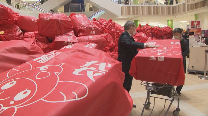 なかでも家電や生活用品などが入った1万円福袋が人気で、ことしも感染対策で事前にオンラインで予約を受けた福袋1000個が次々と渡されていました。2日からは通常営業の午前10時に開店します。