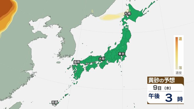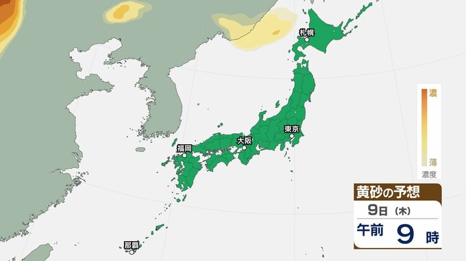 【黄砂情報】10日(金)ごろから日本列島に飛来か…九州・中国・四国・近畿・東海・関東・東北 広い範囲で影響の可能性 8日(水)~11日(土)黄砂シミュレーション【気象庁 8日現在】 RSK山陽放送 2026年4月8日(水) 11:35 国内 天気 9日(木) ▶8日(水)~11日(土)黄砂シミュレーション画像 ▶8日(水)~11日(土)黄砂シミュレーション画像