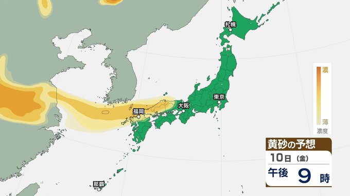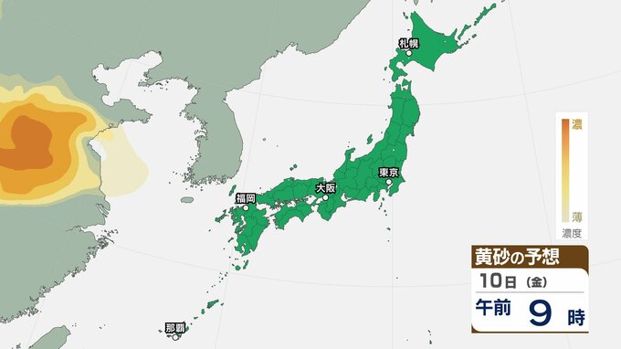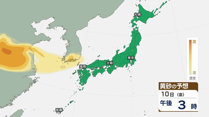 【黄砂情報】10日(金)ごろから日本列島に飛来か…九州・中国・四国・近畿・東海・関東・東北 広い範囲で影響の可能性 8日(水)~11日(土)黄砂シミュレーション【気象庁 8日現在】 RSK山陽放送 2026年4月8日(水) 11:35 国内 天気 10日(金) ▶8日(水)~11日(土)黄砂シミュレーション画像 ▶8日(水)~11日(土)黄砂シミュレーション画像