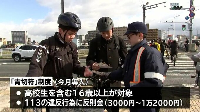 4月から導入された自転車の「青切符」制度では、高校生を含む16歳以上を対象に「一時不停止」や「ながら運転」などの違反行為に反則金が科されます。