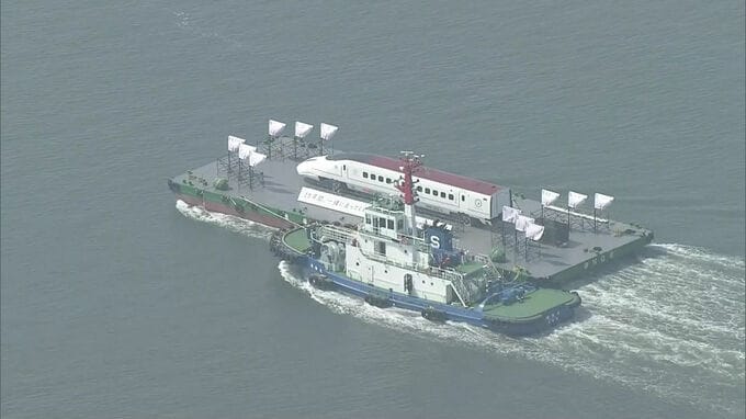 8日未明、陸上に姿を現したのは、全長25メートルの九州新幹線「つばめ」の先頭車両です。