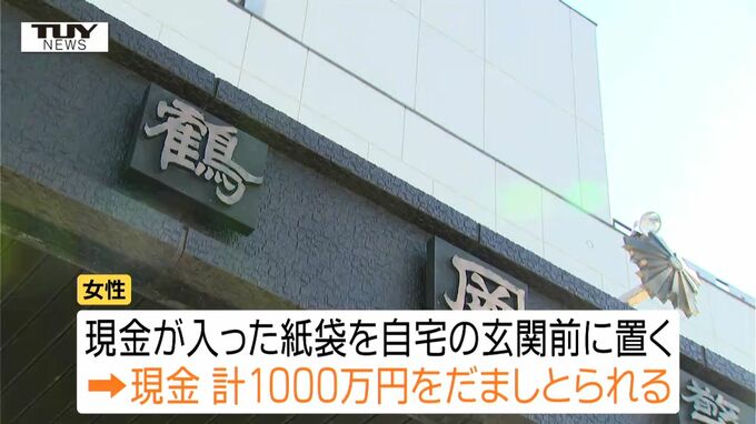女性は指示に従って現金が入った紙袋を自宅の玄関前に置き、あわせて現金1000万円をだましとられました。