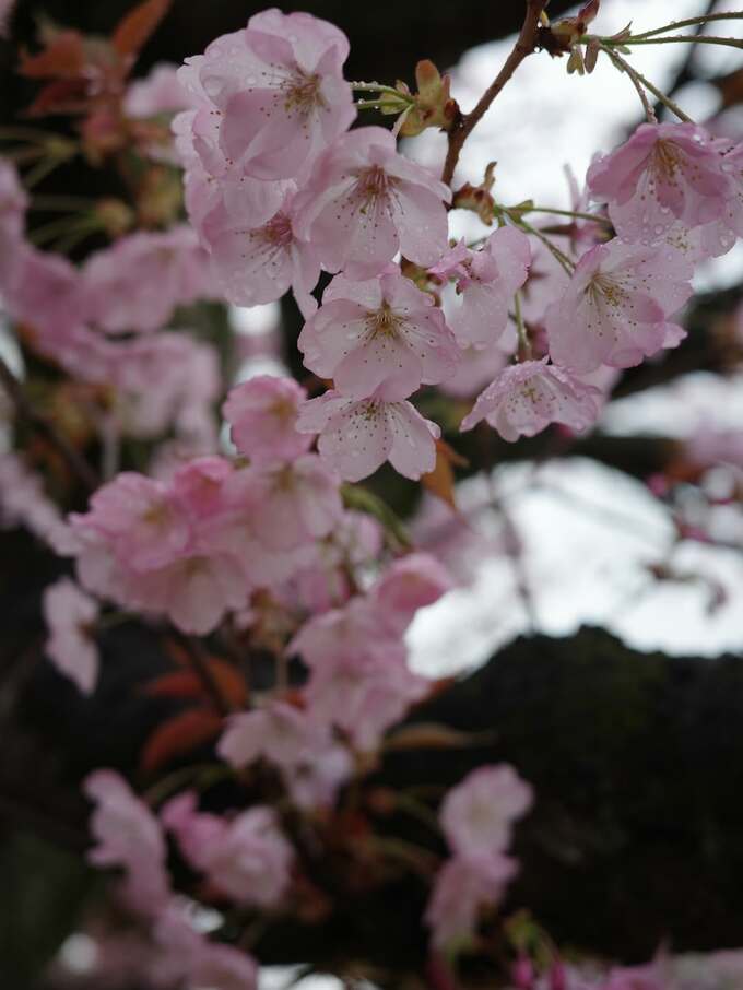 ドライブ中には満開の桜並木も楽しんだようで、薄いピンクの花が空を覆うアーチ状の並木道や、枝に密集して咲き誇る桜の花の写真も公開されました。