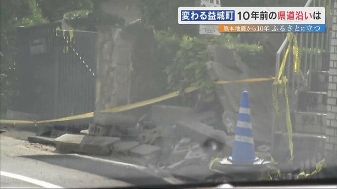 記者「今、益城町に入りました。健軍電停から5分ぐらいですが、このあたりから傷んでいる建物が目立つようになり、道路状況も悪い」