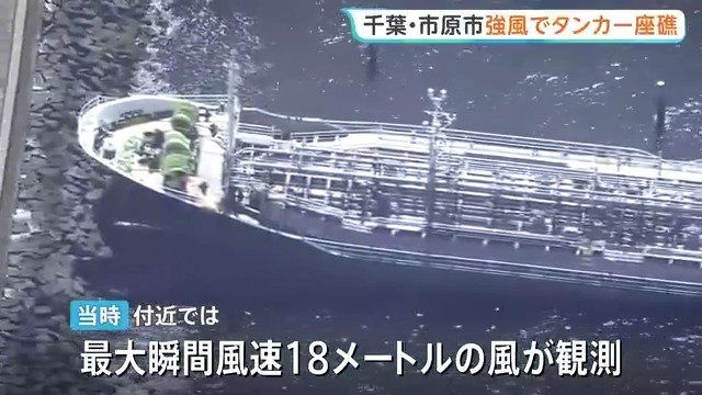「救助願いたい」強風でタンカー流され座礁「動かす方法」検討もメド立たず【千葉・市原】 TBSテレビ 2026年4月8日(水) 13:54 国内 最大瞬間風速18メートルの風が観測 乗組員6人にけがはありませんでした。 当時、付近では最大瞬間風速18メートルの風が観測されていました。 現在、運航会社を中心に船を動かす方法を検討していますが、目途はたっていません。