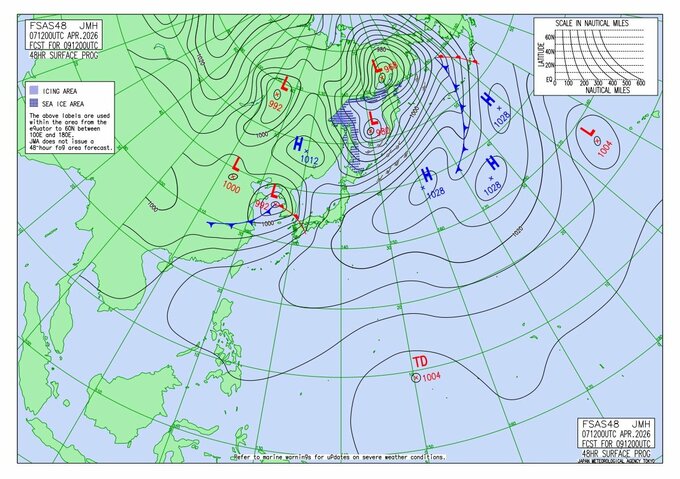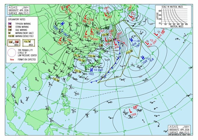 【台風のたまごが4月に?】発達して日本付近まで北上する可能性は? 日本の南に“雨と風の渦”熱帯低気圧が今後発生へ… 10日先までの雨・風のシミュレーション・最新情報あり(4月18日(土)まで) 青森テレビ 2026年4月8日(水) 14:35 国内 天気図・予想図【アジア太平洋域・気象庁発表】 最新実況天気図 2026年4月8日9時の実況(気象庁HPより) 最新24時間予想図 2026年4月8日21時の予想(気象庁HPより) 最新48時間予想図 2026年4月9日21時の予想(気象庁HPより) 【雨・風の予想シミュレーションをまとめて見る】 (4月8日~9日、10日~11日、12日~13日、14~15日、16日~17日、18日) 【この記事を最初から読む】