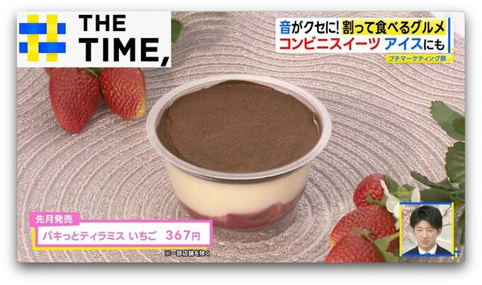 3月に『セブン-イレブン』から発売された「パキっとティラミス いちご」(367円※一部店舗を除く)は、果肉入りのイチゴソースを使ったティラミスの表面を“ココアパウダーたっぷりのチョコ”でコーティング。