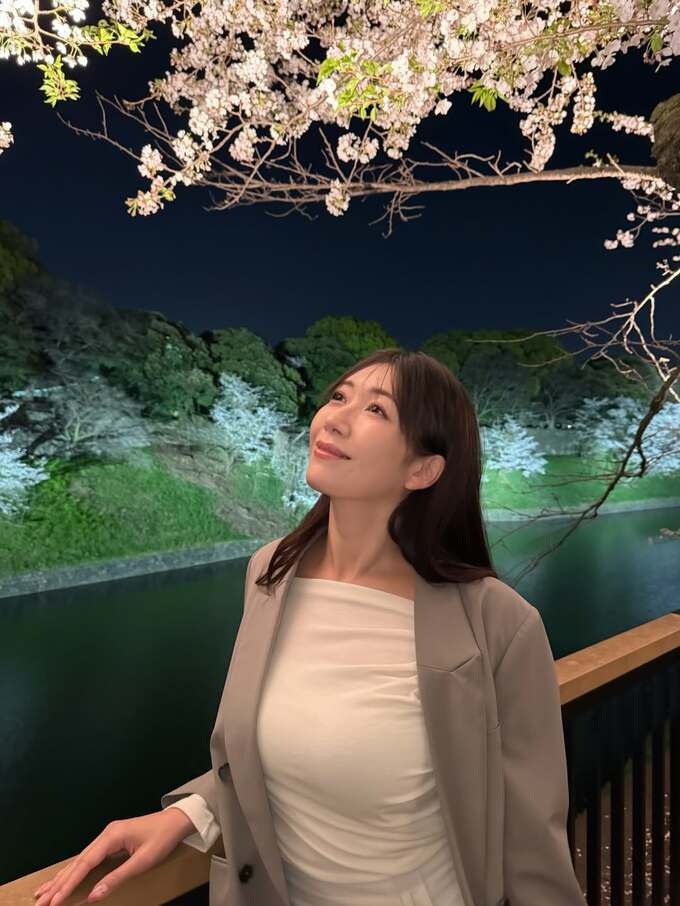 気象予報士の穂川果音さんが自身のインスタグラムを更新。夜桜を楽しむ様子を公開しました。