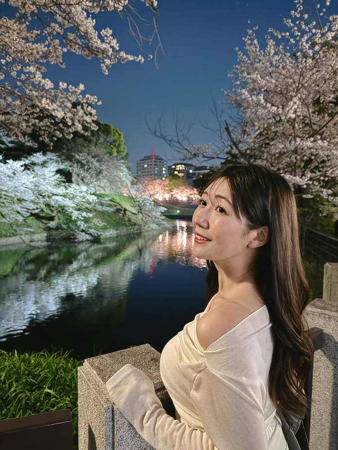 穂川さんはライトアップされた夜桜をバックに撮影した画像を添えて「千鳥ヶ淵の夜桜も素敵でしたー」と投稿。