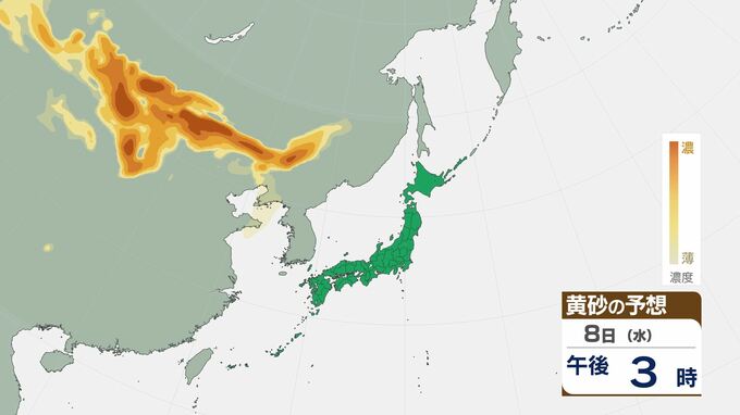 3. 【黄砂情報】10日(金)頃から日本列島広い範囲に黄砂が飛来するおそれ…九州・中国・四国・近畿・東海・関東・東北 アレルギー症状の悪化に注意【11日(土)にかけての黄砂飛来シミュレーション】
