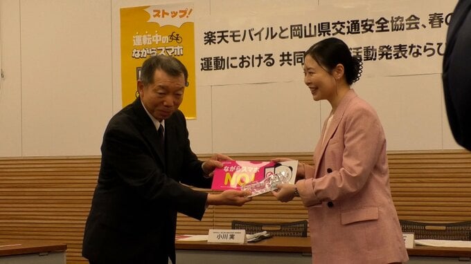 春の交通安全県民運動に合わせて、楽天モバイルと岡山県交通安全協会が連携して啓発活動を進めています。