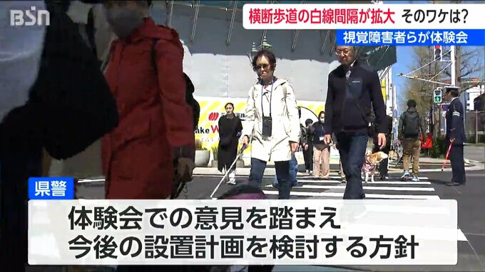 一方で視覚障害者らから「横断歩道が認識しにくくなるのではないか」との指摘があり8日、実際に体験会が行われました。