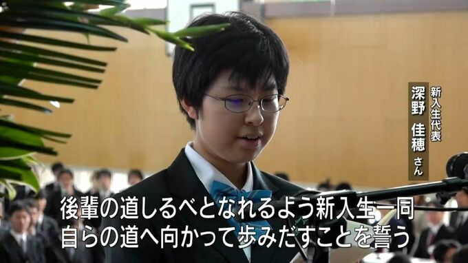 (新入生代表 深野佳穂さん)「後輩の道しるべとなれるよう新入生一同、自らの道へ向かって歩みだすことを誓う」