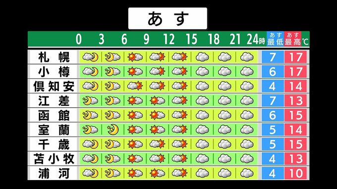 8日の夜は広く晴れる見込みです。9日の午前中は晴れ間がありますが、午後は曇り空に変わるでしょう。9日の札幌は17度まで気温が上がり、今年一番の暖かさになりそうです。