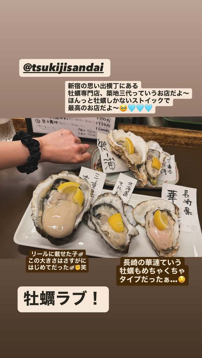 タレントのおのののかさんが自身のインスタグラムを更新。大好物の牡蠣を堪能する姿を公開しました。