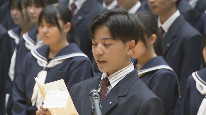 新入生代表・大崎暖真さん「たとえ壁にぶつかってもここで出会う1人1人と刺激し合い、励まし合いながら、かけがえのない3年間を通じて未来を切り開く遊学人へと成長してまいります。」