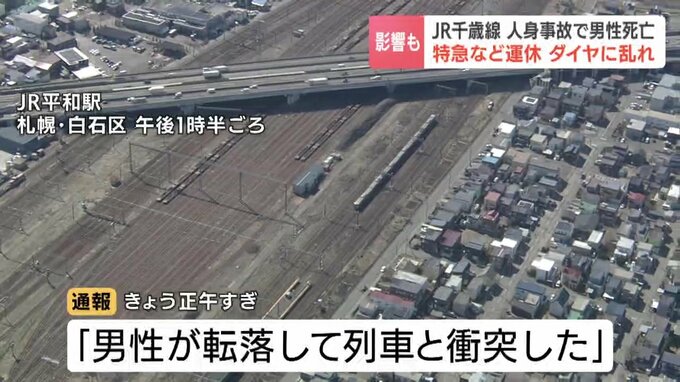 8日正午すぎ、札幌市白石区のJR千歳線・平和駅構内で「男性が転落して列車と衝突した」とJRから警察に通報がありました。