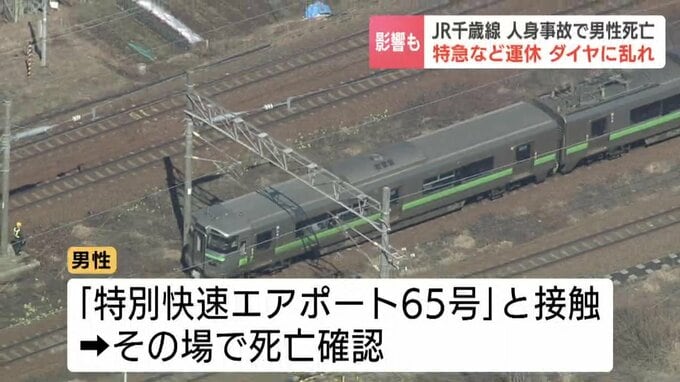男性は新千歳空港発小樽行きの「特別快速エアポート65号」と接触し、その場で死亡が確認されました。