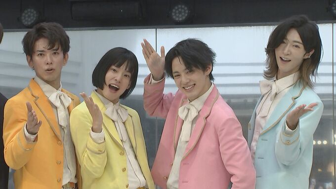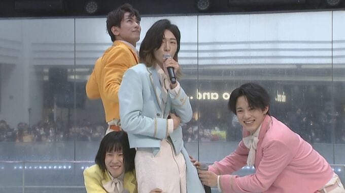 純烈・酒井一圭さんプロデュース『セカンドチャンスオーディション』の応募者1000人の中から選ばれた4人組グループ『モナキ』が8日、メジャーデビューシングル『ほんまやで☆なんでやねん☆しらんけど』発売記念イベントを池袋・サンシャインシティ噴水広場で開催しました。