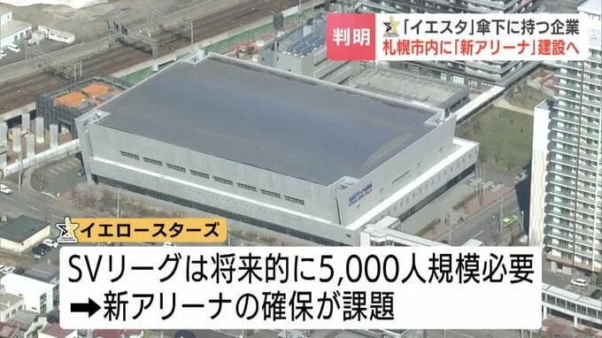 イエロースターズは現在、2500人収容の北ガスアリーナ札幌46をホームアリーナとしていますが、来シーズン参入を目指すSVリーグが将来的に5000人規模を求めていることから、新アリーナの確保が課題となっていました。