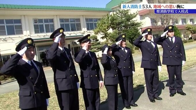 入校生たちは8日からのおよそ半年間、消防士に必要な知識を学び、卒業後はそれぞれの消防本部での任務にあたります。