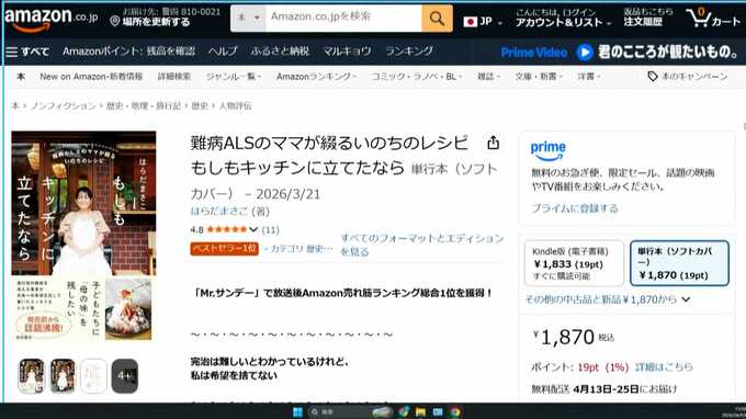 大手通販サイト、アマゾンでは複数の部門で1位を記録しています。