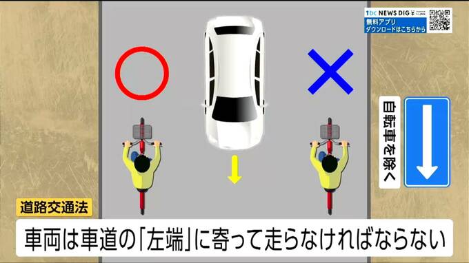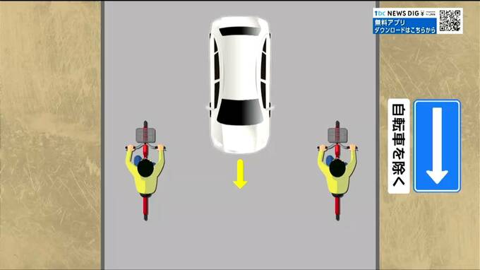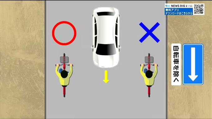 普通なら車と同じ方向に走ることになりますが、この場合、車が自分に向かって走行してきます。