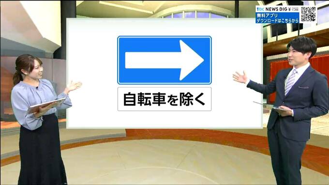 まず、1つ目。「自転車を除く」と書かれた一方通行標識のある道路。
