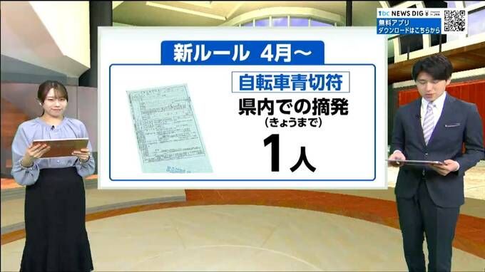 宮城県警によりますと、4月1日に始まったこの青切符制度、県内では、これまでに1人が摘発されているということです。