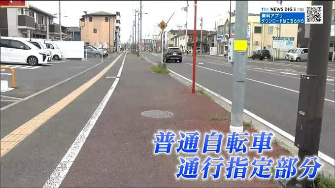 「普通自転車通行指定部分」と呼ばれていて、大きな道路を挟んで両側の歩道にこのゾーンが設けられていることがあります。