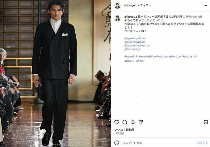 冨永章胤さんは「日本でショーを開催するのは約10年ぶりの#agnèsb めちゃめちゃかっこよかった!」と、綴ると写真をアップ。