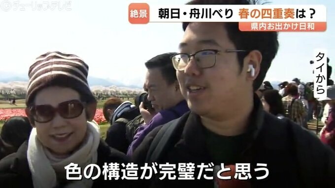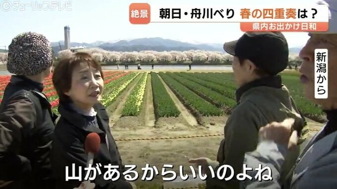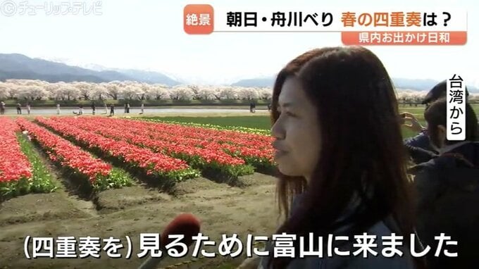 「(四重奏を)見るために富山に来ました」「天気が良くて山も花も見られてあとサクラもラッキーだわ」