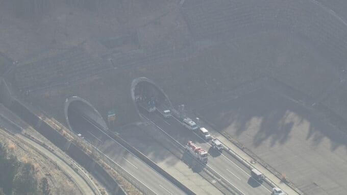 当時、前方では車線を増やす工事が行われ、トンネルの中は車線規制と最高時速を50キロに引き下げる速度規制がとられていました。