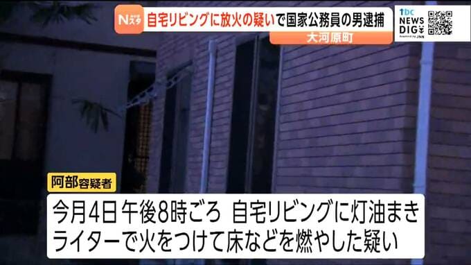 4月4日、宮城県大河原町内の自宅のリビングに灯油をまいて放火した疑いで国家公務員の男が逮捕されました。
