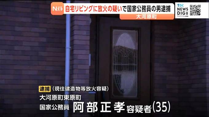 現住建造物等放火の疑いで逮捕されたのは、宮城県大河原町東原町の国家公務員阿部正孝容疑者(35)です。