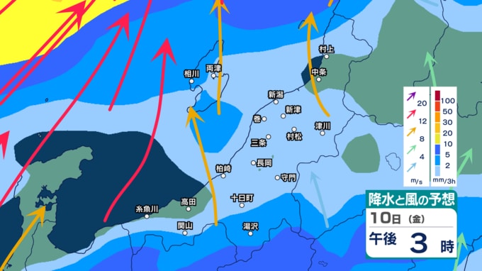 さくらまじ?【 新潟の雨・風 】新潟・信濃川の桜が満開!でも週末は“花散らしの雨”に? 10日(金)は午後ほど風が強くなる見込み【今後の雨と風のシミュレーション・8日午後7時現在】 新潟放送 2026年4月8日(水) 19:49 国内 天気 10日(金)の雨と風のシミュレーション