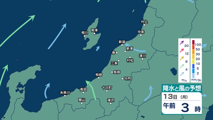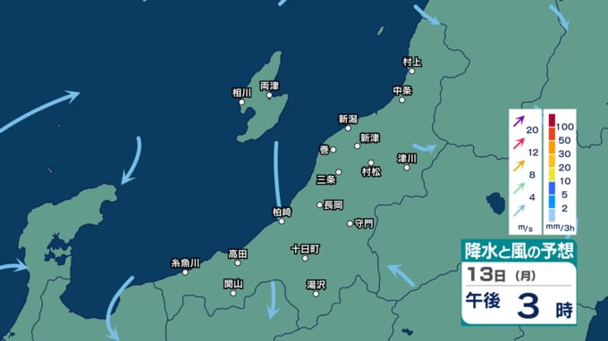 さくらまじ?【 新潟の雨・風 】新潟・信濃川の桜が満開!でも週末は“花散らしの雨”に? 10日(金)は午後ほど風が強くなる見込み【今後の雨と風のシミュレーション・8日午後7時現在】 新潟放送 2026年4月8日(水) 19:49 国内 天気 13日(月)の雨と風のシミュレーション