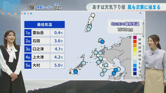 一方、最高気温は佐世保20.1度、大村19.6度、長崎19.5度と20度近くまで上昇。お昼は過ごしやすい体感となりました。