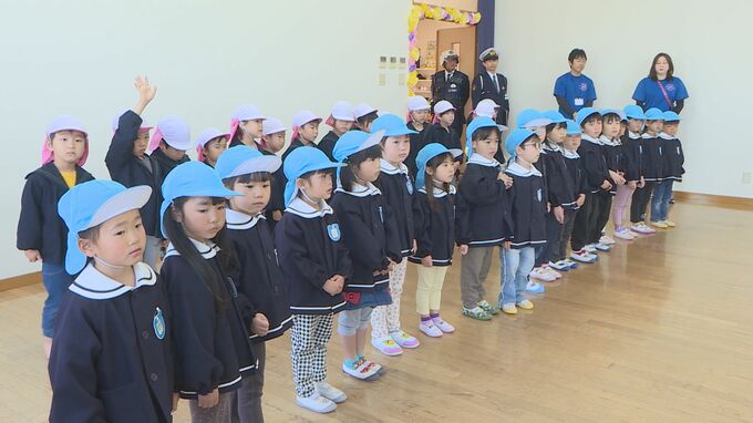 交通ルールを学んだのは下関短期大学付属第二幼稚園とでしまつ子ども園の年長の園児33人です。