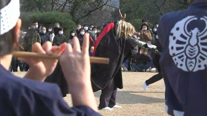 令和の大改修を終えて初めての正月を迎えた岡山城では「烏城初夢まつり」が行われました。