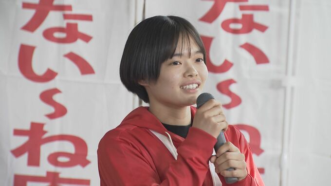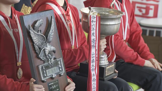 3月に開かれた全国高校選抜女子学校対抗で優勝した柳井商工女子バドミントン部(山口県柳井市)が8日、市民に優勝を報告しました。